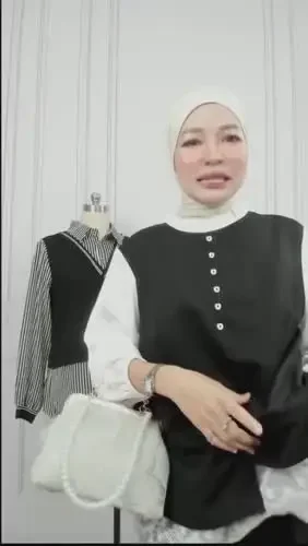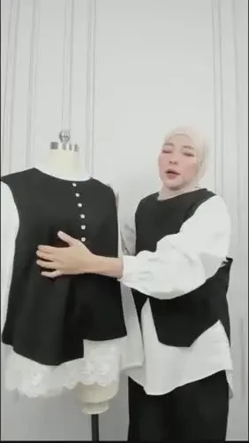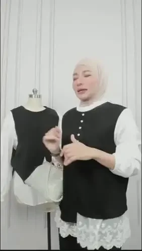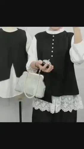FADFAD Atasan berlapis desain dua potong lengan panjang gaya elegan untuk wanita