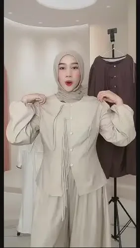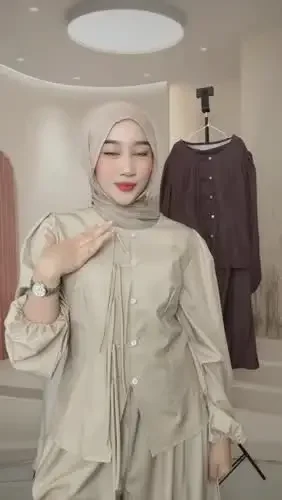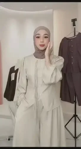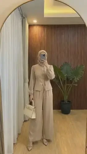 ASAYA Setelan wanita muslim 2 pcs - kemeja kontras + celana kulot nyaman