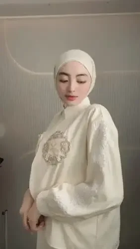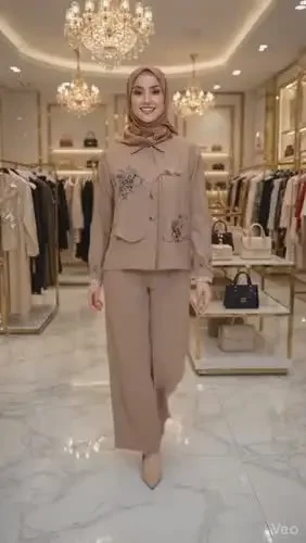 CHICMORE Kemeja lengan panjang dengan aksen bordir, kancing tangan, dipadukan dengan celana lebar polos