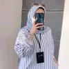 [NEW]CHICMORE Setelan kemeja wanita kasual dengan motif garis-garis bordir tidak beraturan dan patchwork, dipadukan dengan celana panjang lebar.
