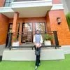 FADFAD Atasan wanita lengan panjang dengan desain bunga di bagian bahu dan pinggang pas.