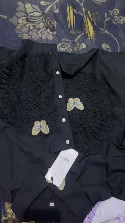 [READY STOCK]FADFAD Atasan kemeja putih lengan panjang dengan variasi bunga dibagian depan gaya kasual untuk wanita
